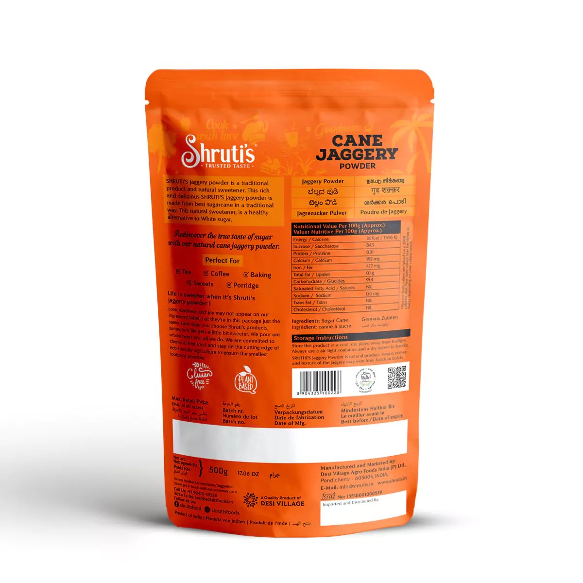 Shrutis Jaggery Powder contains more calories and has rich nutrition profile.