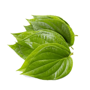 BETEL LEAF – The leaves are full of vitamins like vitamin C, thiamine, niacin, riboflavin and carotene and are a great source of calcium. It removes Hazardous, Dissolve Mucus and Increases Appetizing.