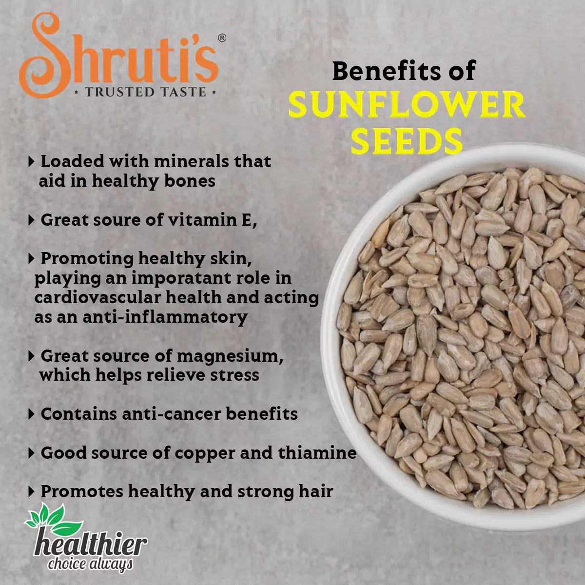 Sunflower seeds are one such type of seeds that are loaded with high-quality nutrients. They are rich in healthy fats, beneficial plant compounds and several vitamins and minerals. They generally have a mild, nutty flavor and a firm but tender texture. Enjoy them as a to go snack, also add them to your salads, baked goods, Indian sweets, and granola bars.
